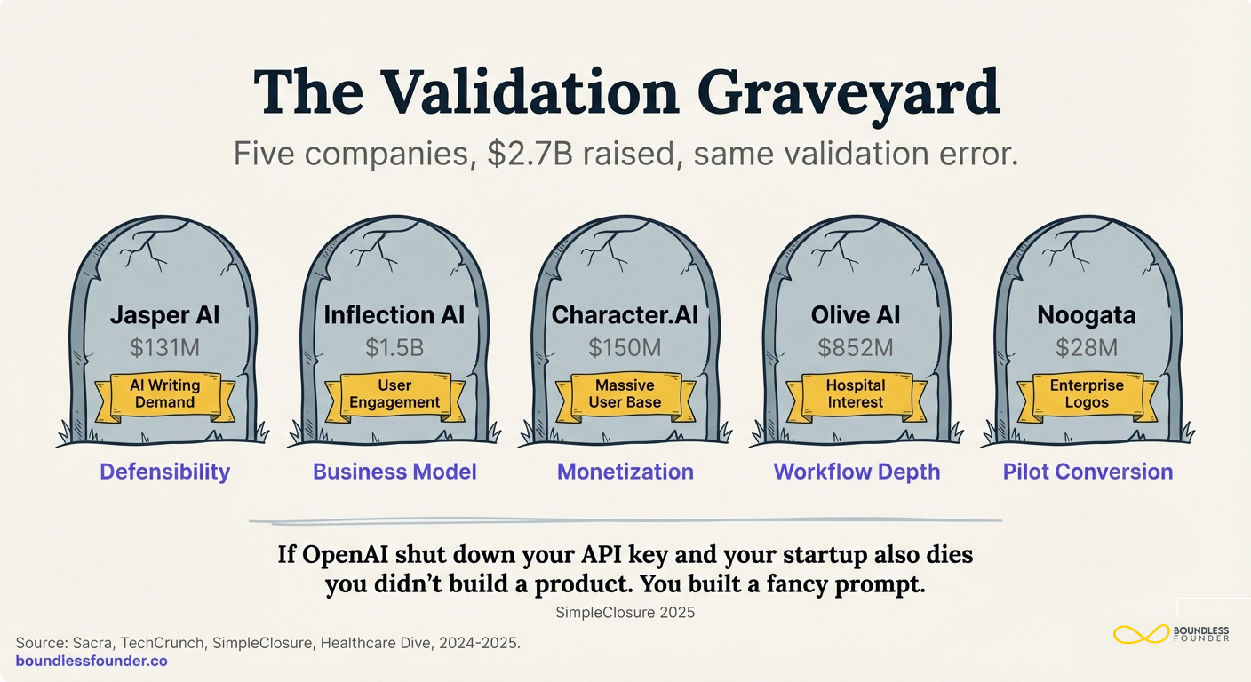 These aren't companies that failed to build. They failed to validate the thing that actually mattered.